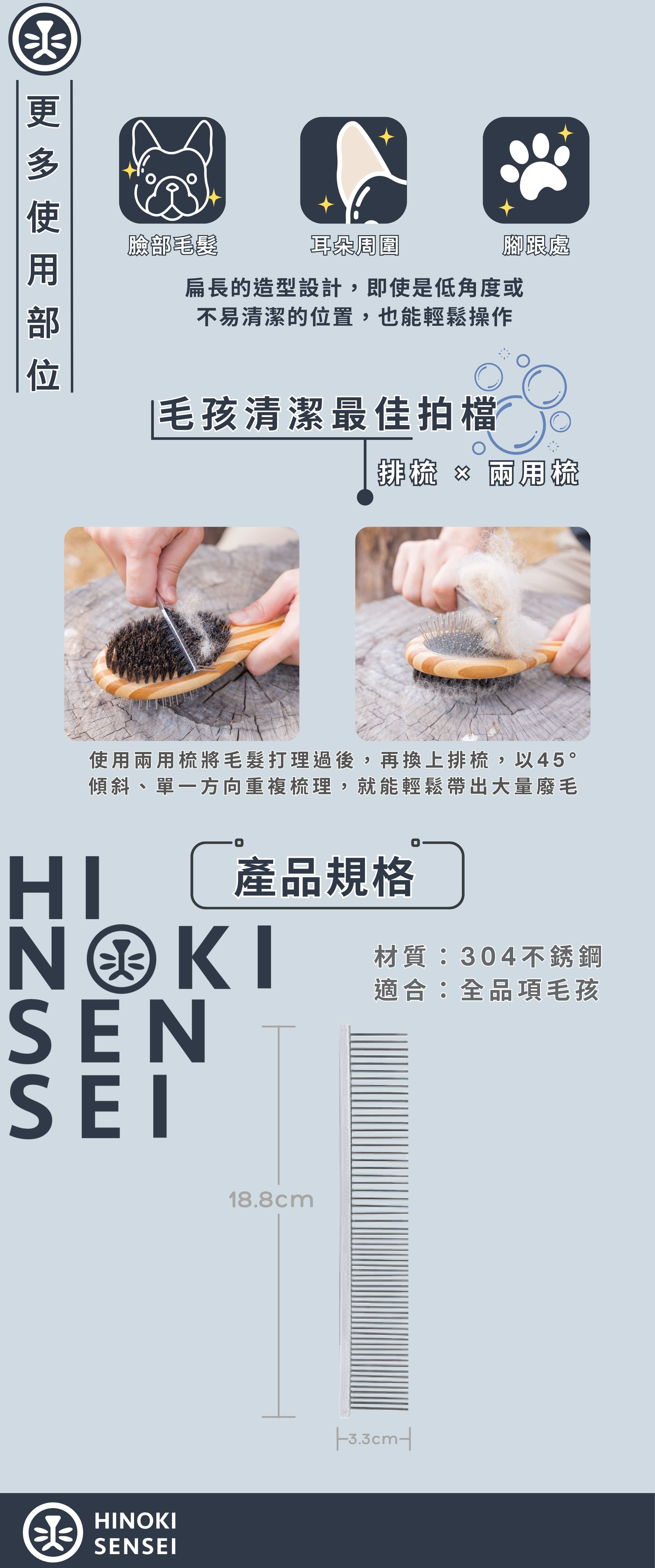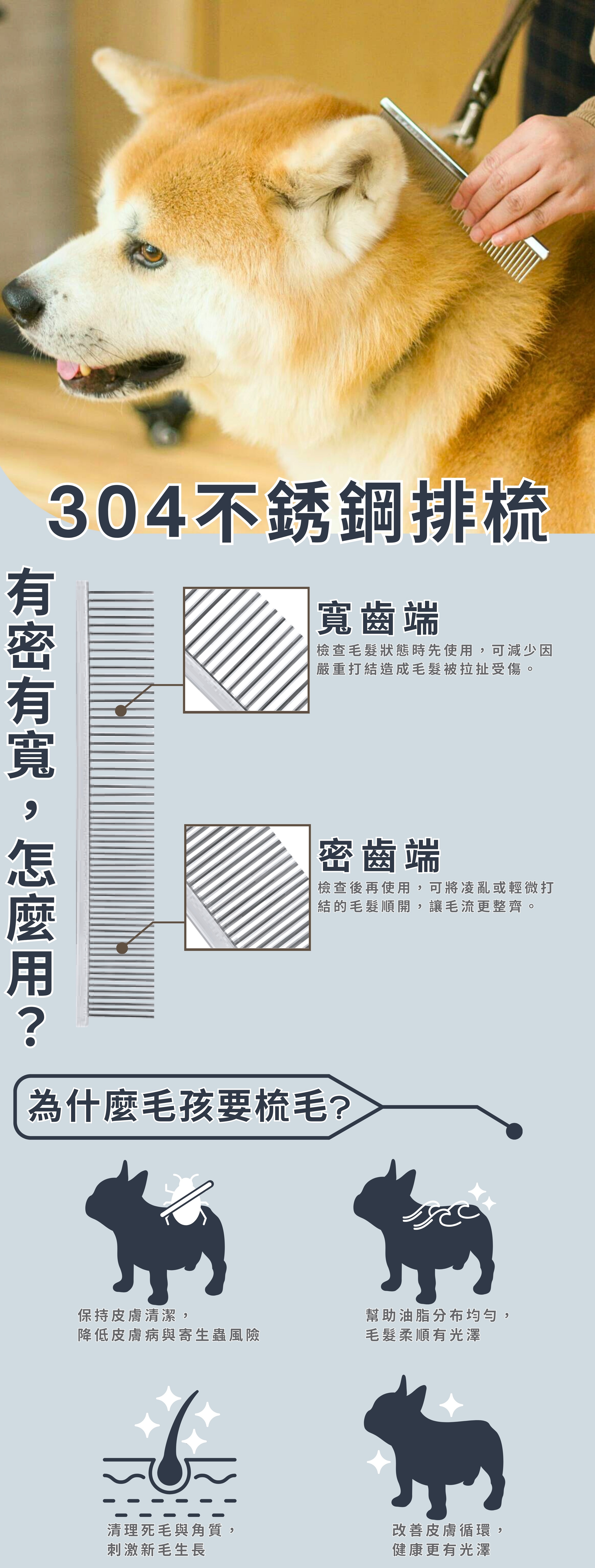 排梳是寵物梳理工具中不可或缺的配角,不僅能作為 局部梳理工具,更是 檢查毛髮打結 的最佳幫手。